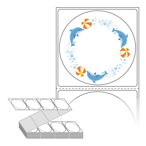롤라벨보다 편리한 제트라벨, 규격코드: ZL6464, 디자인코드: DA015(돌고래 점프!!), Φ64 (mm) 원형