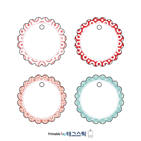 북유럽풍 턱수건 모양 꽃무늬 태그