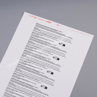 레이저 프린터에서 사용할 수 있는 PET(polyethylene terephthalate, PET : 열가소성 플라스틱의 하나) 재질로로서 방수,절연 등의 특징이 있으며 비바람등의 외부환경에 노출되어도 쉽게 찢어지거나 파손되지 않습니다. 또한 인쇄용 양면코팅이 되어있으므로, 양면 프린팅이 가능합니다.